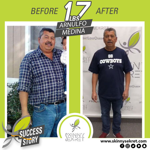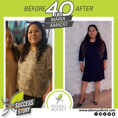 "Me aventuré y comencé a usar el Transform Kit. En solo unos meses, logré mi meta de bajar 20 libras y recuperé mi autoestima. Cambió mi cuerpo, mi forma de pensar y mi estilo de vida. Motivé a mi esposo a que también comenzara su transformación con SKINNY SEKRET!."